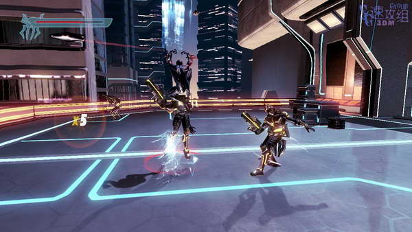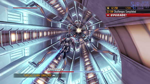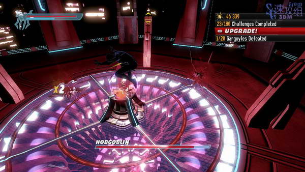 BOSS战,几个红色的全是假的,按B用蛛丝抓住他们飞踢,一脚一个迅速解决,然后真身开始行动。