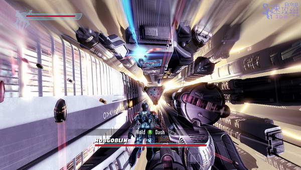 出来后继续荡秋千,外边警察的飞船按B踹过去,一脚一辆。来到另一边的建筑,这里有拿火箭炮的敌人, 被他锁定后按LB进入子弹时间躲开。