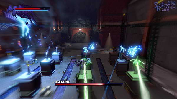 这里又是BOSS战,等他落地攻击后的硬直时间攻击他,之后他会在发电机上变出小怪来, 一脚一个的来回飞着干掉,看到BOSS浮在空中吸收电力的时候立刻过去按B抓住他飞踢,不能让他回血。