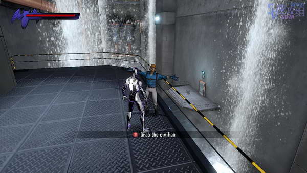 最后隧道口还会有紫色的大怪,这终究不是可以一下秒杀的了,和前机关的高级兵差不多的, 等他全身放电的时候不要惹他,可以用东西砸他,其他时候肉搏,他防守就按住Y挑空攻击可以破防,干掉他后进入隧道。
