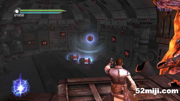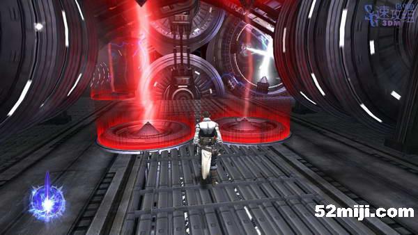 接下来这种房间哪里能走哪里不能走一目了然,尽头处的快速旋转的机器按住RT让他停下来然后通过,这样的房间有三个,尽头处有洞可以跳下去,跳到最下层的通道后直直走出门。