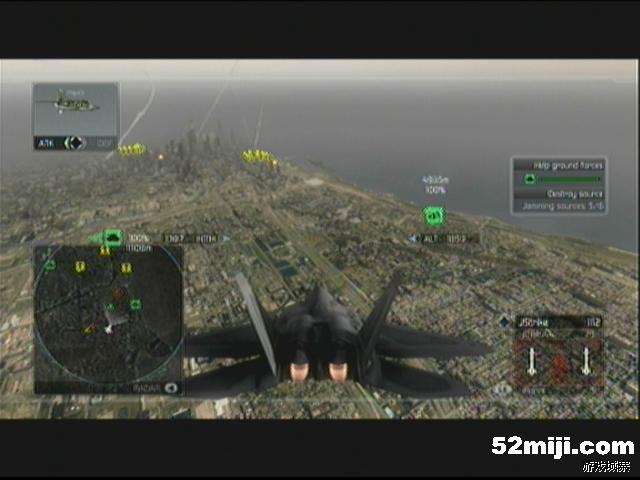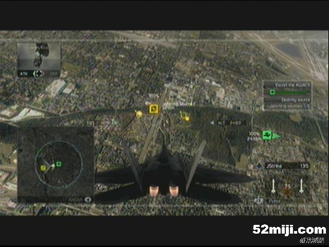 任务开始后,依然收到电磁干扰,迅速飞往地图中的预警机区域,此区域内将不受到任何干扰,飞行一段时间后,就可以看到敌人干扰装置,迅速予以歼灭,一共有6个干扰装置,后边的几个还会有对空AA炮守护,敌人的Mig-29和Mig-23会不断的前来进攻,一定要注意保护好预警机,否则会被敌机打成筛子,攻击的时候尽量不要出预警机的范围,每次击破干扰台装置,预警机的防干扰区域都会增大。在破坏到第5个干扰台后,发生剧情,任务进入下阶段。因为最后一个干扰装置在城市内部,所以任务改为掩护地面部队前去破坏,敌我两方在城市内大打出手,敌人部队位于楼层之间,所以必须选择好合适的飞行路线,否则不是导弹被建筑阻挡,就是飞机撞上摩天大楼,技术好的朋友们就进行刺激的超低空作战吧。等清完全部敌人后,再清理不断出现的直升机,等部队炸毁最后一个干扰装置后,任务成功完成。