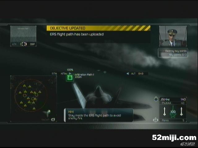 任务开始后飞行一段时间,会到达敌人火力范围,并会出现蓝色的ERS下载条,完毕后出现,ERS通道,玩家必须沿着ERS通道进入敌人火力范围内部,才能不被敌人的炮火攻击到,ERS会领着玩家到达第1个敌人的防御据点,摧毁后沿着ERS出敌人火力范围,会进行第2条下载,完毕后要靠近附近绿色的目标,才可以按X开启通道。这里高速穿梭在敌人炮火中的感觉还是非常刺激的,摧毁全部3处目标后任务更新。支援地面部队,敌人目标非常密集,如果玩家外挂武器有炸弹的话,大可飞到高出玩一次轰炸机高空轰炸。全灭敌人后任务结束。