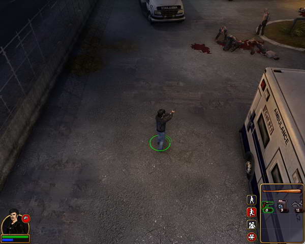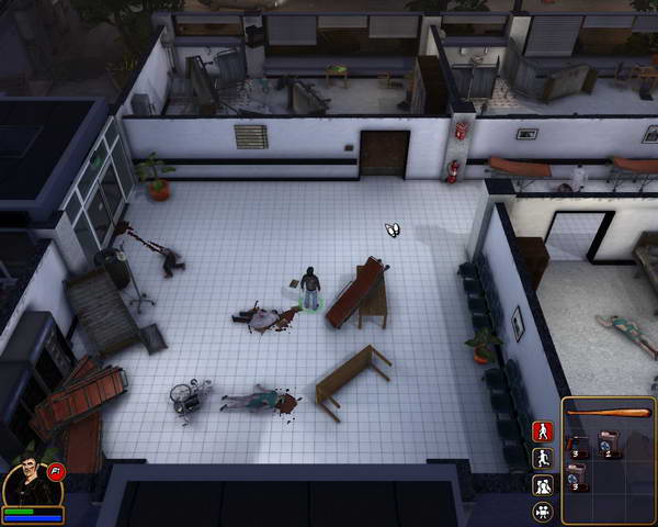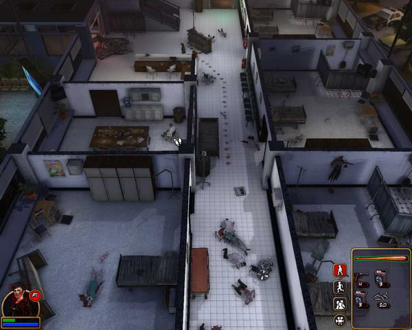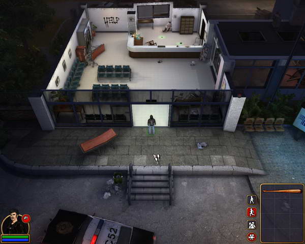下车后往前走来到医院门口,整个医院到处都是破烂不堪的样子,显然已经受到了袭击。但是为了朋友的病情,主角果断的开们走了进去。进入后看到吧台后面有个女护士在和地上的警察“亲热”,男主角看到这么影响市容的事情,果断上去干掉了护士MM,可以在地上捡到一把手枪和一些药品,但是药品主角无法使用,必须找都会使用药品的人后才能补血。