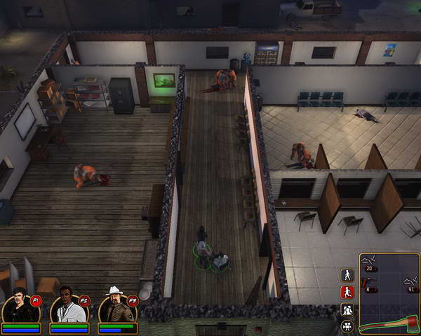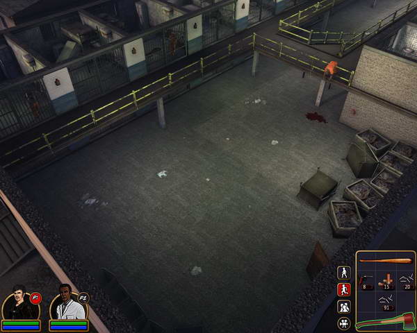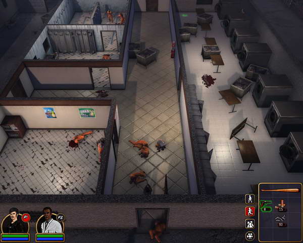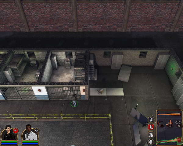 监狱中关着非常多的丧尸,但是他们都出不来。上到二楼后左边拐角处可以见到被关着的警长,利用旁边的开关打开监狱们。同时也放出了所有的丧尸。这时警长门的开门速度非常之慢(难道他的门生锈?)。警长隔壁的房间里有左轮手枪。砍倒前来的丧尸后,3个人一路冲出监狱后门。