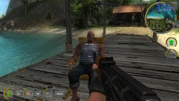 去找Juarez,去他隔壁的房间找个角落,然后往他脚下扔颗手雷,接着换出枪来杀光这里所有敌人, 搜Juarez的身,找到钥匙后打开囚禁old Diego的房间,和他一起回到码头后他开船送我们离开了小岛。