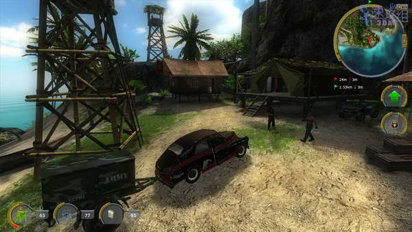 再去地图的红旗点,干掉所有敌人,人数不少,小心塔楼上也有敌人。都干掉后按E上车,把车开回RODRIGO那里然后下车, 再和RODRIGO交谈,然后和COMANDANTE交谈,他要们去去偷柴油机。