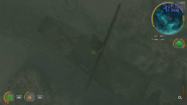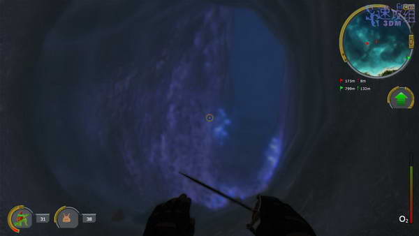 到目标点正上方后一定要先到水面呼吸下再下潜,下潜的沉船处的时候就可以看到洞口了, 游进去之后不要直直走,离水面太远,会憋死,从左边走,不远处就可以浮到水面呼吸下了。
