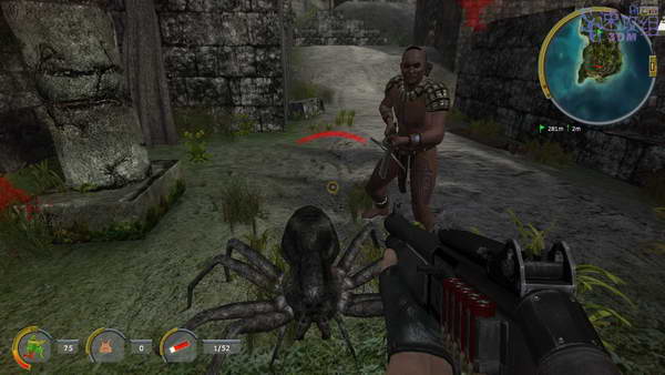 来到目标小岛上,进入骷髅头样子的山洞,动力都是蜘蛛,小的一两枪就死,大的要好几枪, 进入到山洞最里面的一个钟乳洞里,和躺在地上的印第安人对话后原路返回,报告任务,得到雕像。