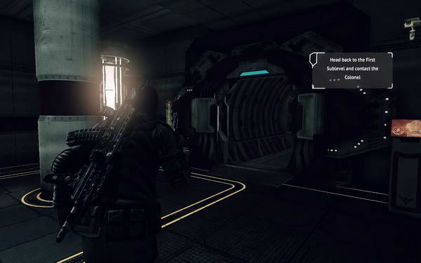 从右侧门进入之后会出现两名新敌人解决后继续前进对着门按E后对话完毕会给密码(2385)之后回去去左侧的门输入(WSAD选择回车确认)打开即可,控制主角出门后跟随目标人物即可在进了一个大厅后会出现一个新敌人击杀掉后继续前进在又进了个房间后左侧会出现敌人同样击杀然后跟随目标人物,下来之后需要按照顺序开关系统(顺序432)开启后去目标点根据按键提示操作开启机器此时会出现4名敌人解决即可
