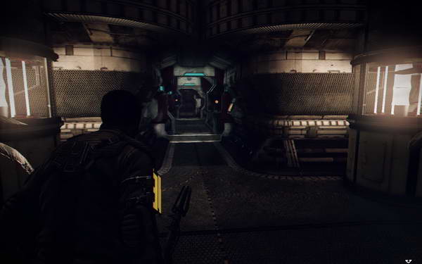 第一关,本关开始需要去右侧拿取KEY依次打开大门即可拿到ID卡后出来把大门打开之后前进过场动画完后继续前进,之后会看到上方掉下货柜按E躲过后从左侧的货柜前进按V踢开门外面可入手第一把近战武器继续前进.到了指定地点后前进到发光的箱子处按空格翻越之后按Ctrl蹲下前进之后会遇到两名敌人,解决后从蓝色烟雾右边走继续爬箱子上去后继续前进爬楼梯上去触及电箱2次此时下方门会打开也会出现敌人