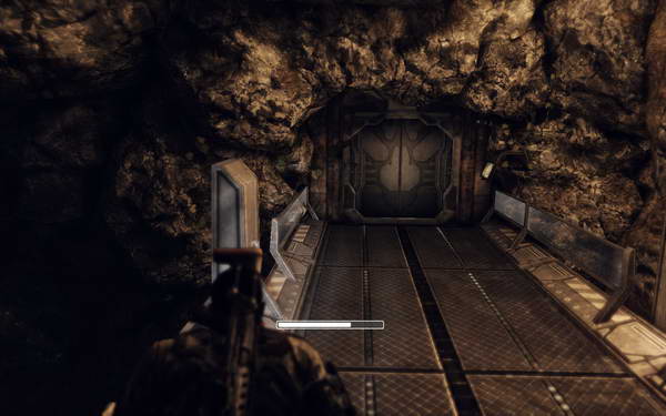 进去后左侧会有一名使用手枪的人类敌人尽快解决之后去右侧箱子上拿ID卡后去门那里过场动画后主角会手持霰弹枪此时会出现两名敌人解决后前进