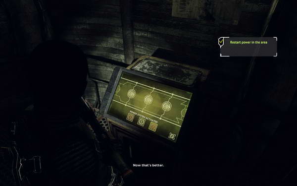 到了下层之后别急着往前跑前面是陷阱只需右转然后修复电线之后折回这时大风扇已经停了开过去即可.在这个通风管要小心前方喷火的管道看好时机过去出来之后修复线路视角会切回去门外会来一名敌人击杀,出门左转前进进门后会遇到两名敌人捡起地上弹药补给开门继续前进正前方会出现一名敌人击杀前进进门后还会有一名敌人击杀继续前进