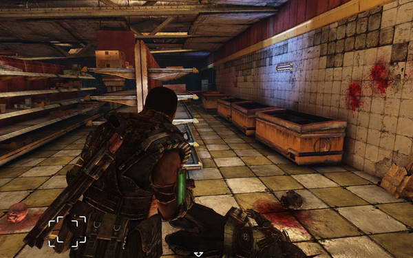 上来后射击吊钩从右侧继续前进.下来后左侧会出现一名敌人解决后前进前方会出现两名敌人击杀前方转角还有一名敌人解决后前进前方转角后正前方大门会冲出一个胖子击杀从左侧继续前进,进来之后把门关上去推开货架前进拿起必要的补给开门前进会有两名敌人出现击杀前进之后转角还会遭遇2名敌人击杀后前进还会有两名敌人同样击杀