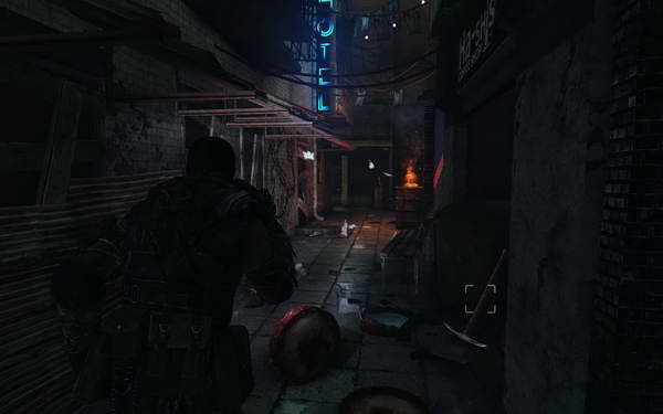 拿起需要的武器砸开铁门锁前进过场动画后会遇到4名敌人(两名敌人持枪)全数击杀继续前进.左侧会有4名敌人(一名敌人持枪)注意拉开距离清理完毕继续前进,会遇到三名敌人一名在楼上持枪击杀掉继续前进走到小巷慢动作之后往后退上方会扔下来油桶.进入左边屋内左转进客厅前进到厨房门口里面会出来一名敌人击杀进入厨房里面上楼梯继续前进,上楼之后打开敌人关上的门把里面两名敌人解决掉右转上楼将对面楼上敌人解决并且把油桶全部点燃之后回头在楼梯有电源射击后下楼.出来往小巷走转角处会出来拿霰弹枪的敌人后方也会出现一名敌人击杀后前进前面会遇到两名敌人(一名携带霰弹枪)解决继续前进