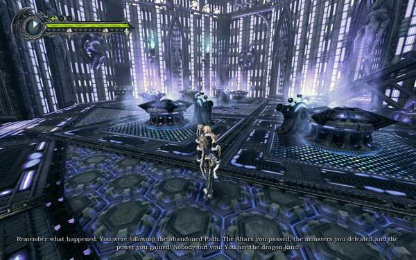 9.到了大厅有5个开关,原本以为是解谜,其实是介绍历史,不去理会,直接到平台触发剧情。往下跳就好!过关!