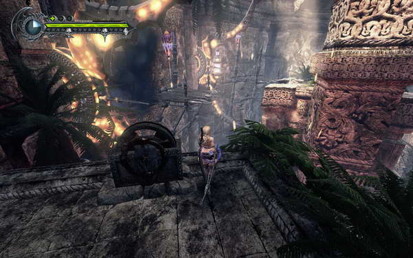4.最后BOSS战前有个解谜游戏,需要按X键开启空间同步,把门口的光球通过灯柱移动到远端的机器那里。第二阶段会有小兵干扰,优先枪杀天上的,几下秒人。BOSS战时不能使用时光回转的,用鼠标左右键连击配合魔法耗血,BOSS飞天后免疫伤害,注意躲避火球和地上的炸弹,以及快速击杀小兵积累能量。落地后躲避冲刺,配合大范围魔法多次消耗BOSS,建议用火焰魔法,掌握规律后轻松过关。