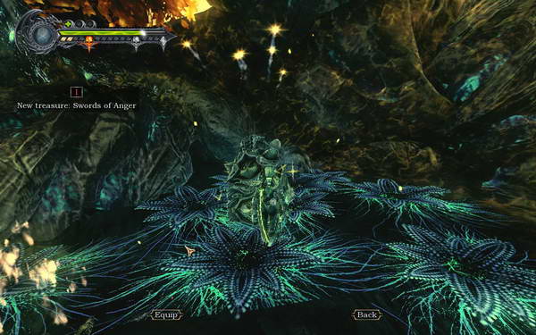 2.瀑布下面有日记,左边的洞里有宝箱,里面有把武器。