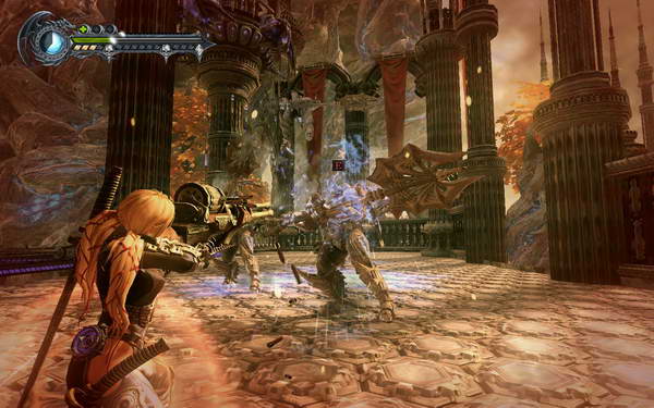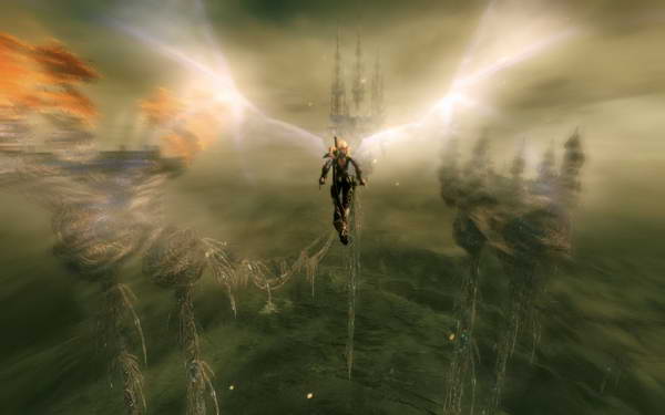5.经过高速穿越通道后,学会了翅膀飞行,按两下空格,控制方向键,再按空格可以拉升高度。飞到4个平台打开开关,消灭小兵,天上的第一时间击杀。再飞回中间平台,破坏4个柱子,获取道具。