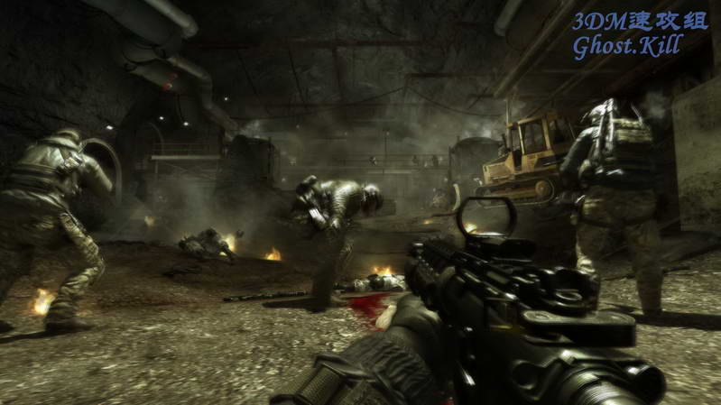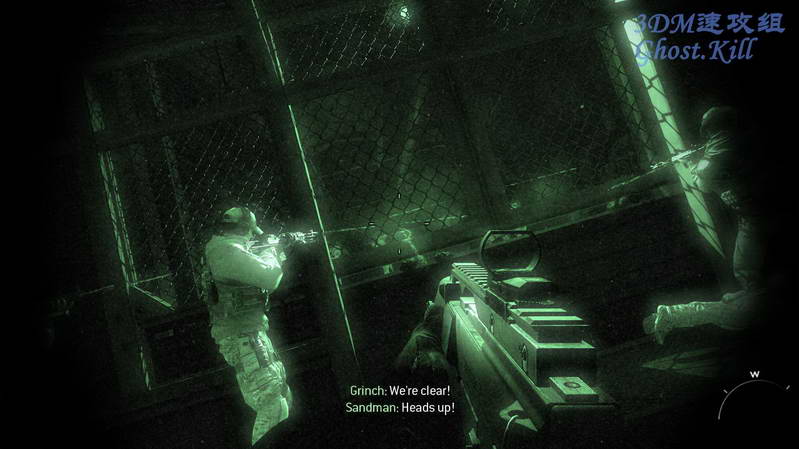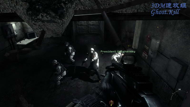 这次和三角洲部队合作前往救援俄总统和他女儿。坐电梯进入敌人基地,电梯门开后干掉背对自己的敌人, 其他敌人赶来用RPG把电梯炸到了最下层,按N使用夜视仪,从电梯出来杀光敌人。