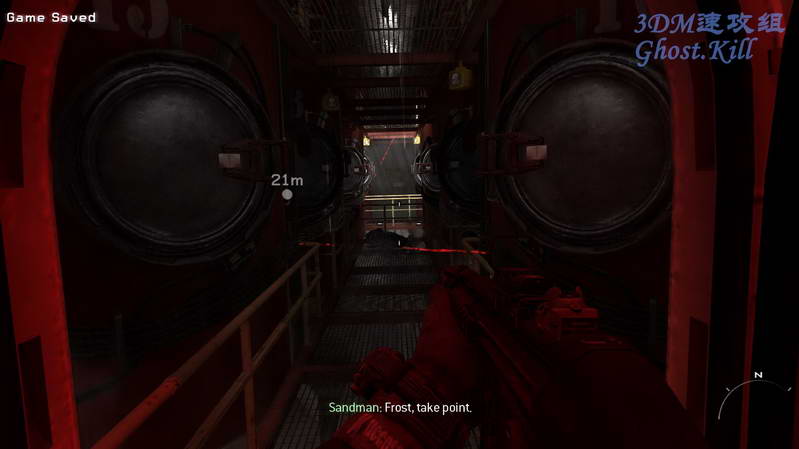 内部空间非常狭窄,通道很多,多往四周看看,别被暗算了。很多敌人都是红外瞄准的枪,这是自寻死路, 根据红外线判断位置时候全部杀掉。