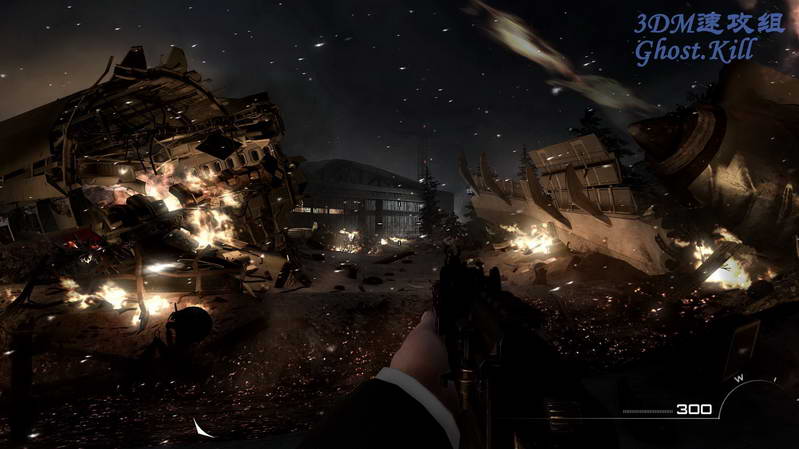 从飞机残骸中新来之后一瘸一拐的来到外面,拿出枪来去找总统,路上会遭到敌人的抵抗,唯一的不便就是天黑, 看不清楚位置。全部杀光之后和总统汇合,等待救援直升机。