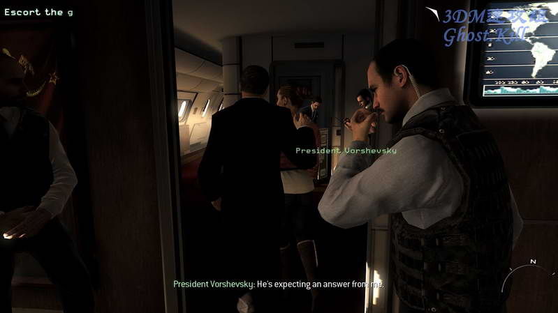 跟着俄国总统进入会议室,刚开始说了两句,隔壁机厢就听到了枪声,拿出手枪保护总统,等敌人破门而入后干掉他们, 那他们的枪杀出去,肃清整架飞机。