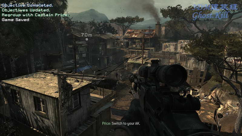 快到目标工厂的时候和普莱斯 肥皂分头行动,爬到房顶干掉狙击手,掩护他们俩进入工厂里, 不过马卡洛夫已经不在了。这时候大量敌人向他们涌去,全部狙死,别忘了狗狗。