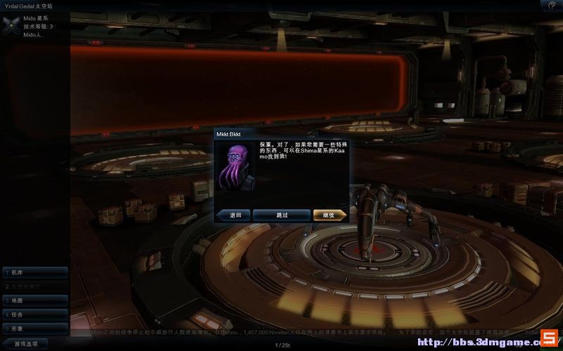 回到NORRIS的空间站将任务汇报这一切,NORRIS告知KEITH可先去太空会客厅做一些小分支任务赚一些金币等待TERRAN舰队的到来