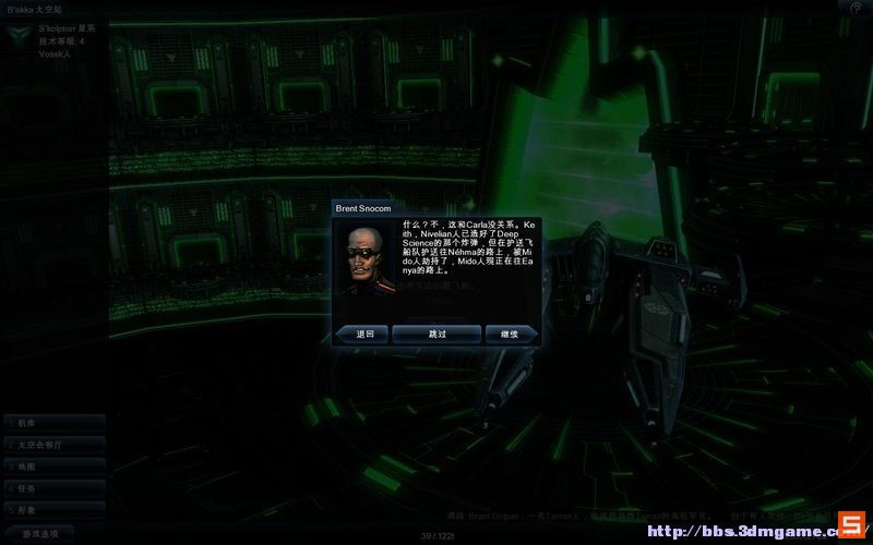 再次回去同BRENT对话,在一切准备完毕之后,BRENT打算派遣一艘装满炸药的巨舰冲往VOID的星系炸毁母舰从而永久解除VOID的威胁。而KEITH将被派遣护卫该舰艇