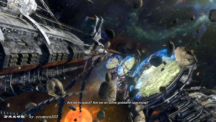 Davis通过火车来到一个不知名的地方,晃悠半天突然发现竟然来到了太空飞船中;而地球的那个小镇,就在下方···