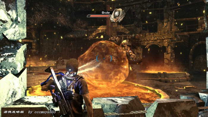 2:照例一路杀过去,地球上都是地下冒出来的岩浆,整个世界已经一片狼藉。这里的岩浆可以用重力装置制造火球,用火球可以烧毁大门和敌人。