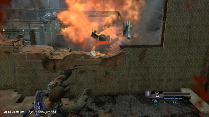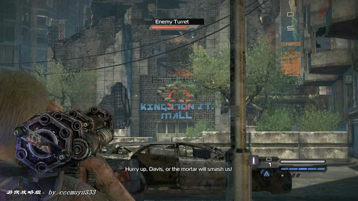 1:来到金士顿区之后,前往街头,一路打过去找到队友。之后按照队友的提示,使用火箭筒摧毁前面的碉堡。这个碉堡需要很多下才能摧毁,在敌人附近找找新的火箭筒。