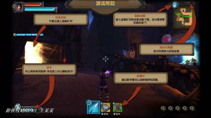 玩法和技巧:这款游戏有点考验玩家的操作,如果纯靠陷阱的话不能保证通过任何关卡,所以玩家要对武器熟练的掌握。当遇到自己感觉有鸭梨的BOSS时候大家可以使用角色的种族技能(就是鼠标右键攻击),两个角色的种族技能不同,但是功效基本相同。陷阱的设置首先要查看地形,之后就是自己操作的娴熟度。操作好的可以以攻为守,就是建立在出怪口比较近的地方。怪物基本是跟随玩家跑,所以玩的时候跑位很重要,站位会让陷阱发挥更大的功效。其次就是对装备的升级,升级高的装备对每关都有很大的帮助。有的玩家可能玩之前会去查看陷阱的作用,其实作用不大,可以通过游戏体验查看。玩家觉得有用的道具可以先升级,我这里介绍一下“地刺陷阱”,玩通关之后发现这款陷阱升级后有减速功能,本身就可以阻挡怪物,所以建议没有思路的玩家可以参考。关于角色本身的武器——GG榴弹枪/MM瞬发法杖,新手玩家可以先体验MM。