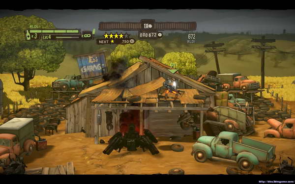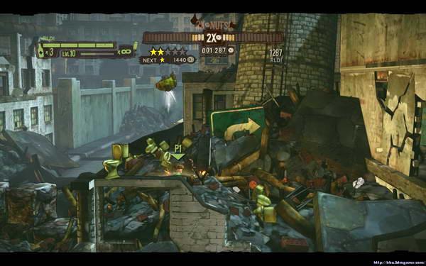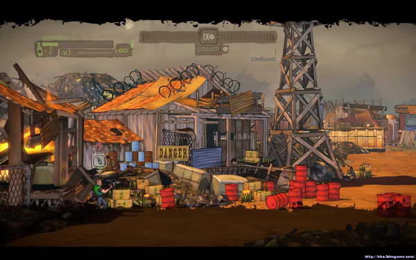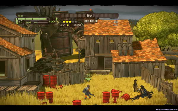 本关开始后会出现少量敌人清理后前进(一路上建议多利用油桶等爆炸物),前进一段距离后会出现新敌人在房顶拉开距离使用机枪即可.从房顶继续前进后会遇到一定量的蜘蛛机器人和火箭机器人(大个头)路上会出现补给箱和道具箱,第二个补给点会出现大型的蜘蛛(绕道背后攻击),在到一个花园后会遭遇3个火箭机器人的围堵解决后前进