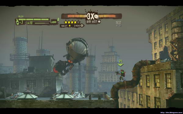 到了屋顶之后会有一定数量的敌人出现(注意火箭机器人)前进一段距离后从上方的管道通过(建议从上方管道通过).'BOSS战',首先躲开BOSS扔下来的第一枚炮弹(到右上管道即可)之后等BOSS降低飞行高度扫射击败即可(小型导弹是可以打掉的)