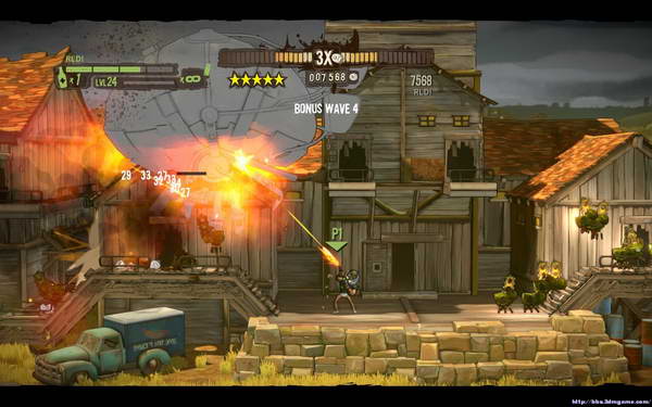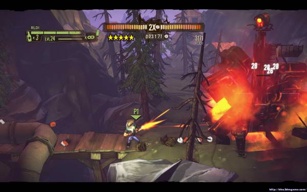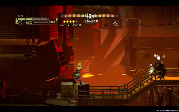 ----------3-1---------- 本关多到平台上去(会有新的自爆机器人)到后期会有4个机枪(通常左右个一个)
