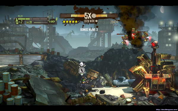 本关开始后按照提示射击墙上的油桶进入建筑物逐渐清理炮台和杂兵,来到楼顶后会到第一个遇敌点会出现飞行机器人和少量杂兵,到了管道中心会到第二个遇敌点会出现少量蜘蛛机器人和自走炮台,按照提示再次爆破进入楼房清理小怪出来到管道上会到第三个遇敌点会出现少量蜘蛛机器人和几只飞行机器人