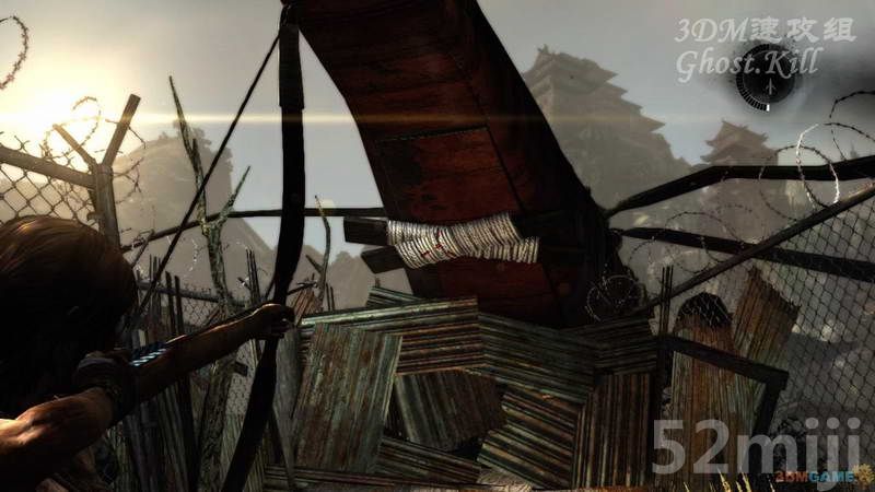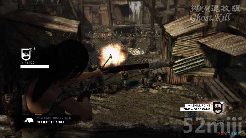 接着是两个在下棋的,等远处的灯灭了,其中一个敌人会过去查看情况,分别用弓箭射杀两人,不要过去暗杀,被瓦斯呛到的劳拉会咳嗽,被敌人发现。等旁边的门需要踩着东西爬上去,从身后的台阶上去打开瓦斯阀门射发火箭,一个铁笼被炸了下去,踩这铁笼翻过门,下边有三个敌人,等都聚集到瓦斯口旁边时一发火箭解决,去接下来的房间。