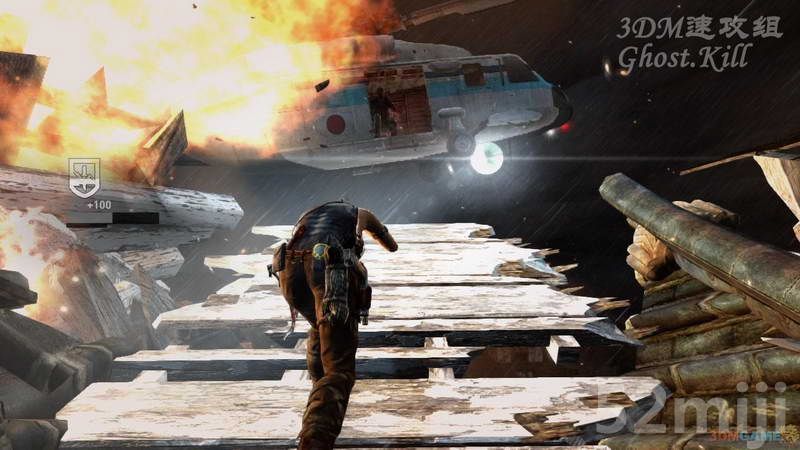 最后就是一个劲的攀岩了,综合利用以前用过的所有攀岩技巧,来到最顶层跳入直升机成功逃离。