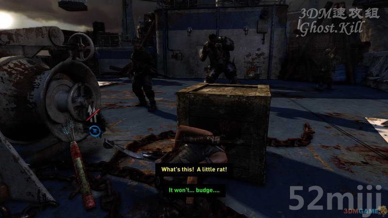 沿码头小路前进,跳到一艘破船上,暗杀掉两个敌人来到甲板,用弓箭射断连接船锚的部分即可返回同伴那里交差。