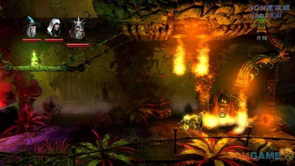 从房间出来后来到这条喷火的路上,右下角有个可以移动的管道,拿开后路上就不会喷火了,迅速通过这里后把管道还原,不然面前的这口锅里会不断地向外爬怪。