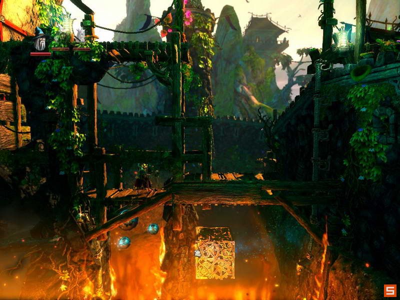 关卡1 三位一体,游戏的主角可以在魔法师,弓箭手与战士之间进行切换。魔法师的能力是召唤箱子和木板并且操纵超能力来控制物品和弱小的怪物,弓箭手拥有强力的远程攻击能力,另外有短时间潜行和绳索攀爬的能力,战士拥有强大的力量,可以摧毁一些其他角色无法打破的障碍物。本攻略的目标是全物品。