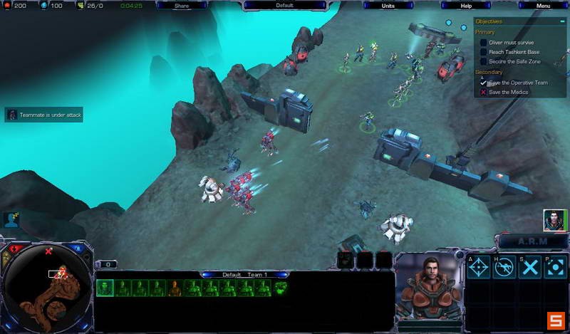 而单位的操控则可以通过键盘快捷键以及鼠标移动来实现。地图仍然是迷雾探索模式。相信熟悉RTS的玩家基本上都可以很快上手