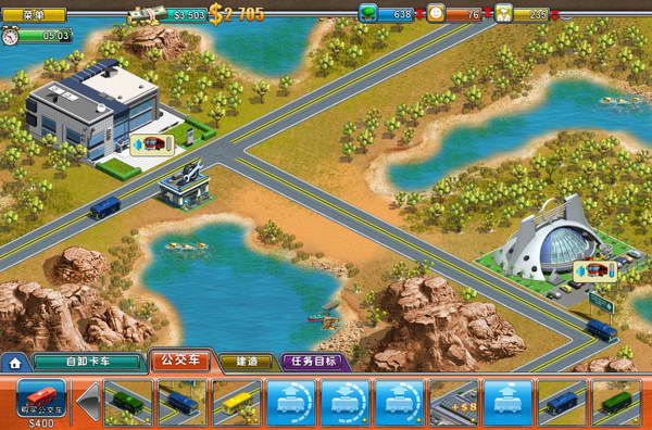 此关是长途客运,而且路口都是50人,采用车群战术,每条路口2两辆车,分配好后再升级1星车辆足矣(说是一路口50人,但是一30人黄车+20人绿车时就变成45人了)