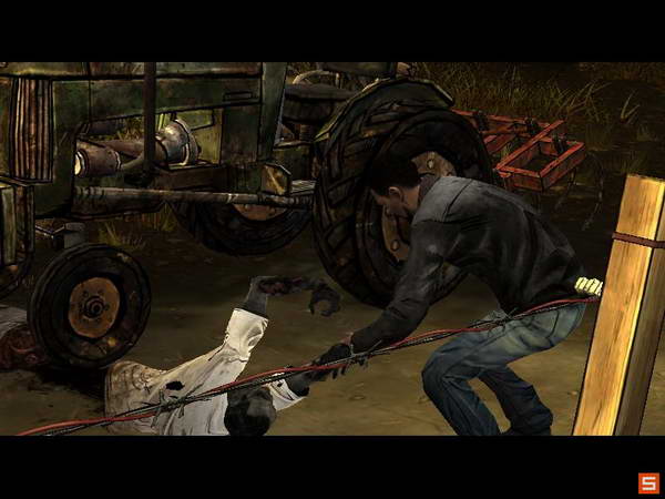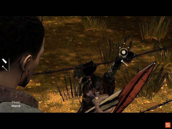 因为被电得太厉害了,僵尸的手被焊在了电网上,这里要把她的手砍掉。。。