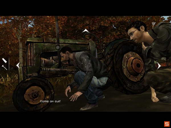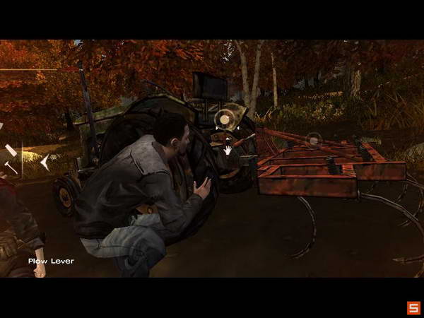 然后往左看,把这个砖头拿掉~,这样拖拉机就可以往前走了~