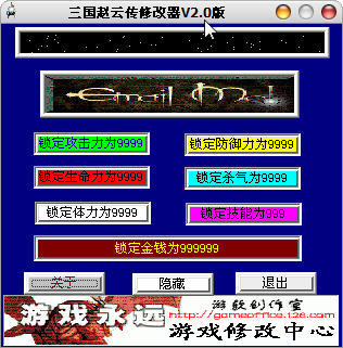 说明:本修改器界面友好在win98/2000下可以运行,主要对主角修改角色的等级、生命、体力、内力、攻击、防御等进行修改无须安装直接运行,参见修改器内“关于”。
