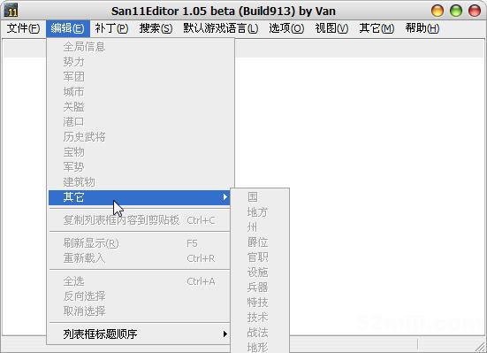 剧本和存档可以直接打开相应文件修改(在修改之前,请在“默认游戏语言”菜单中设置你的三11语言,否则打开剧本或存档时会出现乱码)如果要修改内存,在进入游戏之后,执行File菜单的Attach to San11(修改器什么时候打开没有关系),此时各项功能就可以正常使用切出修改器可以直接用win键,另外修改器也提供了热键——Ctrl+Alt+M