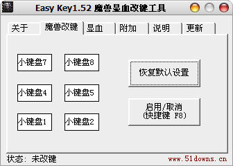原名为easy key网上还有个魔兽工具好象叫warkey但是他改键需要知道键位的键代码,网上还不好搜到.